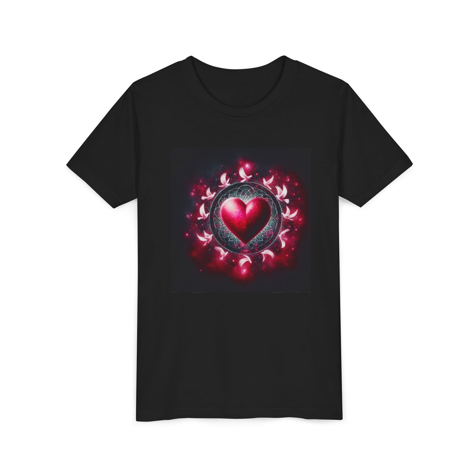 Girls' Youth T-Shirt with Unique Heart & Doves Design